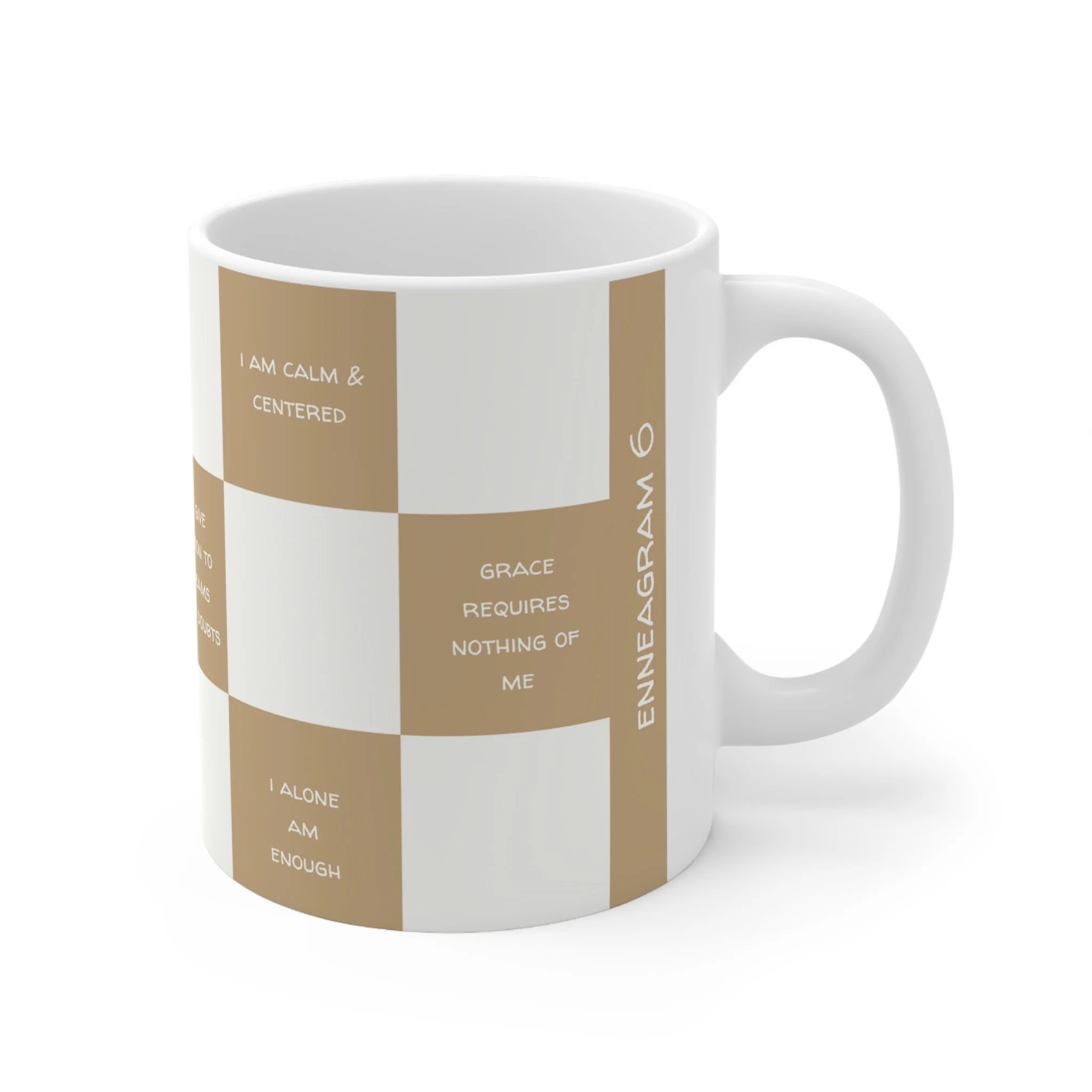 Warm up with an encouraging Enneagram Affirmation Mug. These ceramic mugs include positive affirmations tailored to the Enneagram personality types to give a daily dose of encouragement.